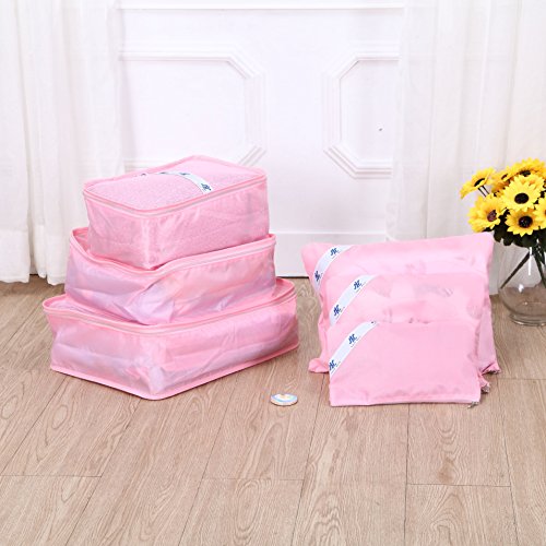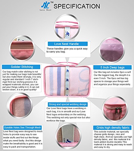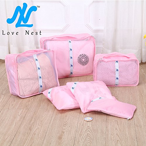 Love Nest - 6 Set Packing Cubes - Travel Organizers with Laundry Bag (Pink)
