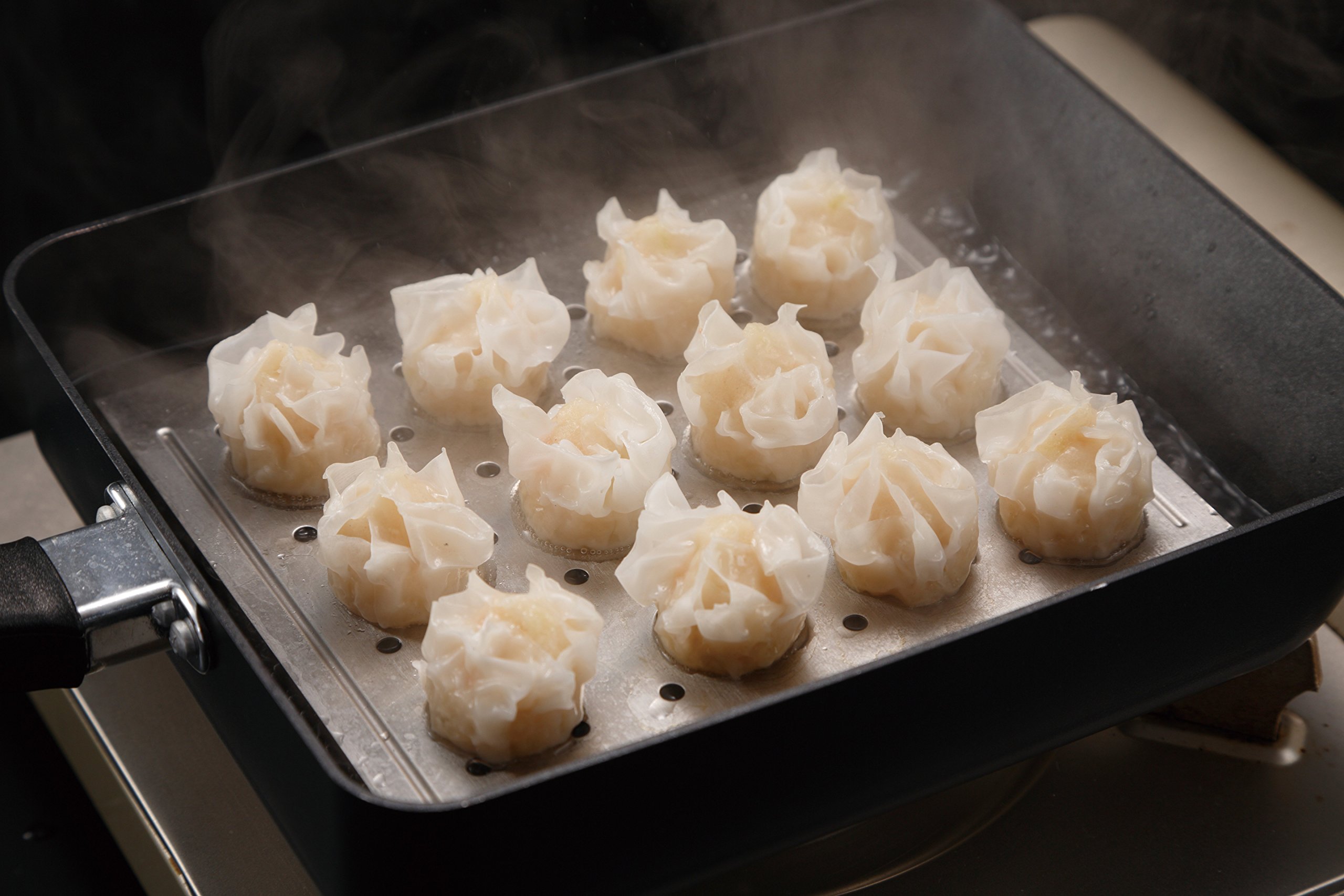 Baked frozen dumpling with bells and a frying pan cover convenient for steaming Shumai deliciously