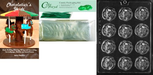 Cybrtrayd MdK25GRBk-F086 Medium Open Rose Fruits and Vegetables Chocolate Candy Mold with Chocolatier's Bundle, Includes 25 Cello Bags, 25 Green Twist Ties and Chocolatier's Guide