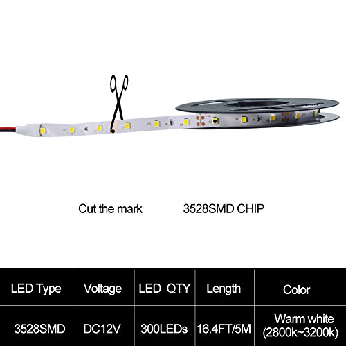 - 【Ideal for decoration】 AmmToo Strip Lights with 300 SMD3528 LEDs in 16.4ft per reel, suitable for indoor lighting and decoration. Such as kitchen, under cabinet, dining room, bedroom, garden, patio, balcony, party, wedding etc.