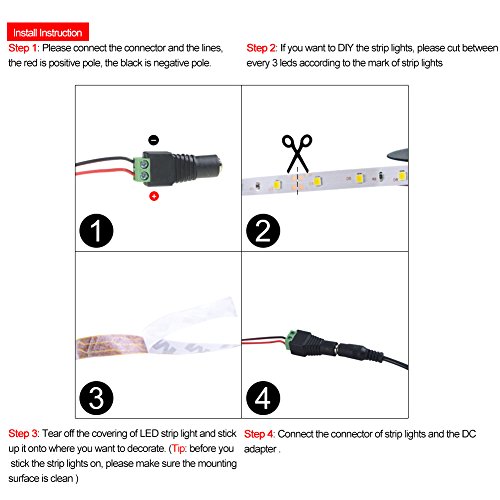- 【AmmToo Led Strip Lights】4 Packs Warm White LED strips (16.4ft 300leds/ reel). Please note here: The AmmToo led strip lights can adapt 2A power adapter at least, and the voltage must be DC 12V. To not affect the brightness of the strip light , the strip lights must not exceed 5 meters.