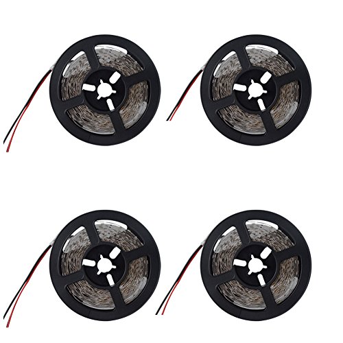AmmToo 4 Pack 16.4ft 5m LED Flexible Strip Light 300 Units SMD 3528 LEDs12V DC Non-waterproof Light Strips, DIY Christmas Holiday Party Lighting and Decoration (4, Warm White,2800-3200K)