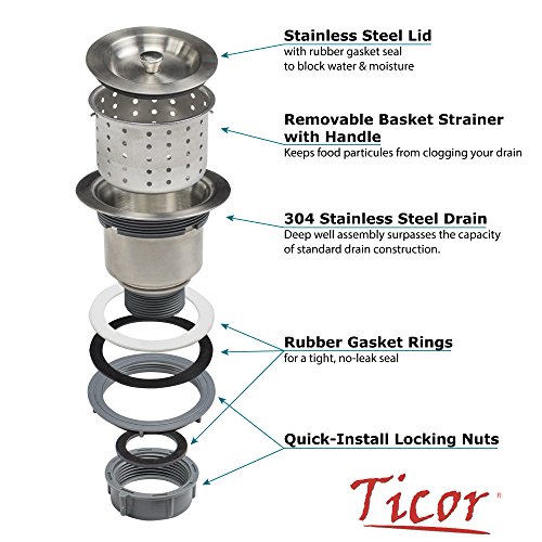 Ticor 3-1/2" Pull-Out Kitchen Sink Waste Basket Strainer Assemble w/ Lid Cover Rustproof 304 Stainless Steel