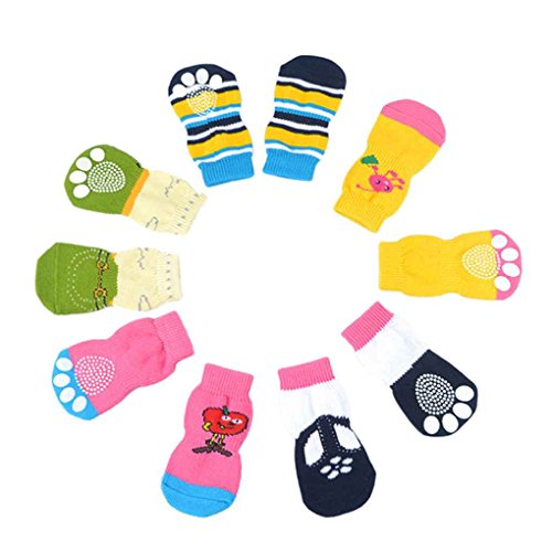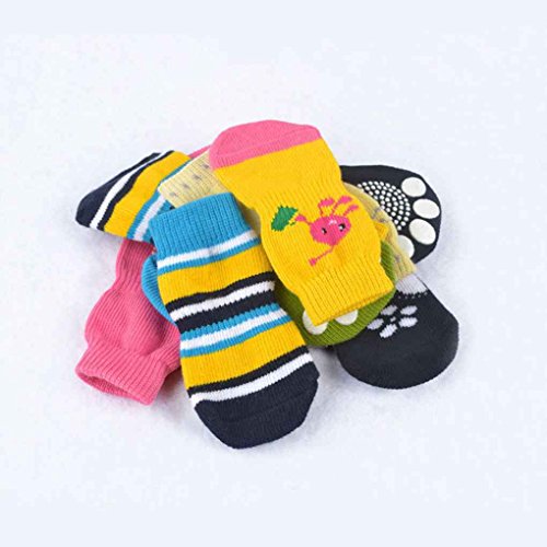 -. Title : Omkuwl 4pcs Pet Socks Doggie Dog Cat Puppy Colorful Anti Slip Pet Product Supply