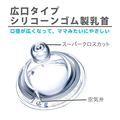 -. Feature : Made in Japan / Wide-neck teat / Anti-Colic air vent / Transparent and tough Silicone / Super cross cut hole technology