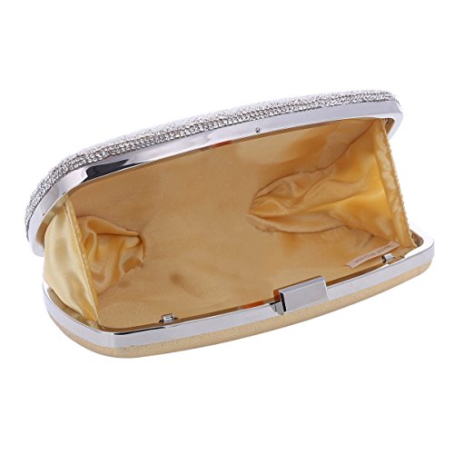 Product Description This graceful evening style clutch is frosted with glistening rhinestones that will make you glow during your special occasion. Bling Shiny Rhinestone front makes it more charming under the lighting.Inside can easily fit a cell phone, compact mirror, lip gloss, and other small things.Conveniently, you can spend the night hands free with the detachable long chain that is included.Measurement is app 20.5x5x12.5cm(8.07x1.96x4.92inch).There has 2 different size for your choice.The long chain size:118cm (46.45inch).the short chain size:38cm(14.96 inch) 0