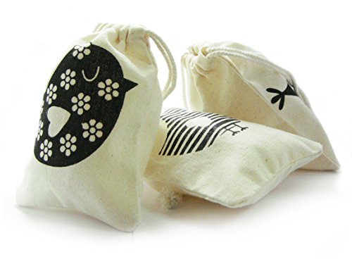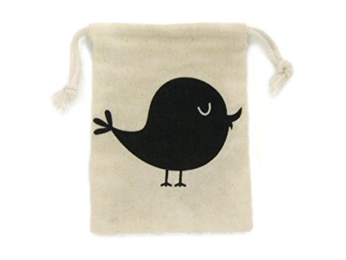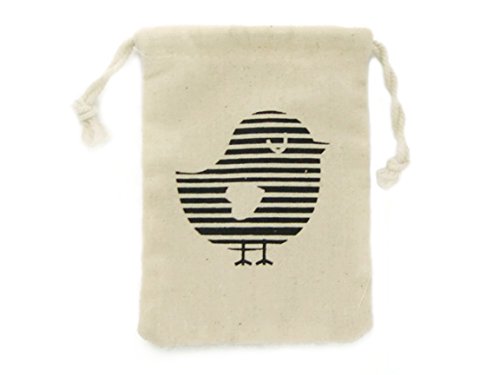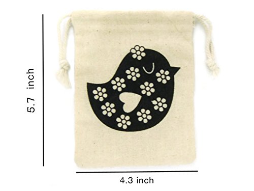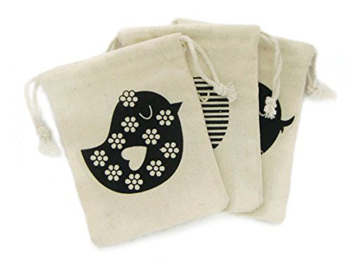 BUMOS Small-sized Unbleached Cotton Reusable Drawstring Gift Bags Wedding Party Gift Spice Bags Natural White 3 Pcs Little Bird, (BA1)