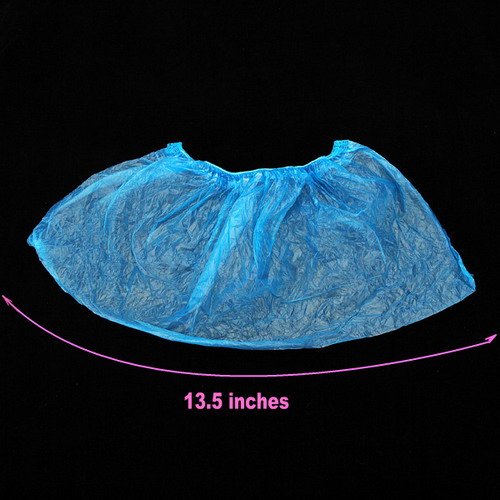 Description :100Pcs Disposable Plastic Thick Outdoor Rainy Day Carpet Cleaning Shoe CoverIt can be used to protect your indoor carpeting and floors from the dirt of outside.It also can be used as raincoat of your shoes. Makes the shoes keep dry and warm, even in the rain.Resist the water, dirt and mud, one size fit most.Specification : Size: as show in the picture above, one size fits mostLength: app 35cm (app 13.5')Width: app 14cm (app 5.5')Material: plasticColor: blue?? ?Package includes :100pcs (50pairs)? x disposable plastic shoes coversDetail Pictures : ? 0