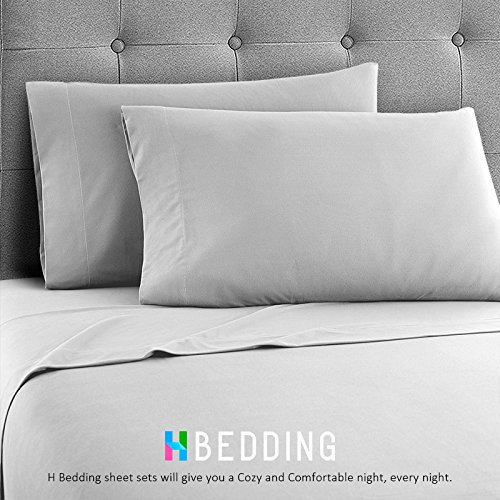 H Bedding Bed Sheet Set, 4pcs Solid Color Brushed Microfiber 1800 Bedding - Wrinkle, Fade, Stain Resistant, Hypoallergenic Sheets, Pillow Case Set - Queen Sheets Set, Light Grey