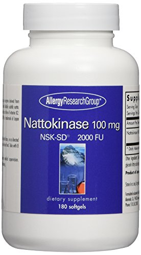 -. Binding : Health and Beauty -. Brand : Allergy Research Group -. EAN : 0713947753808 -. Feature : Isolated, purified and encapsulated nattokinase, an enzyme derived from boiled soybeans and Bacillus subtilis natto / Allergy Research Group -. IsAdultProduct : 0 -. Label : Allergy Research Group -. LegalDisclaimer : Product may not be exactly as shown. Please refer to product description for details. -. Manufacturer : Allergy Research Group -. MPN : 75380 -. NumberOfItems : 1 -. PackageQuantity : 1 -. PartNumber : 75380 -. ProductGroup : Health and Beauty -. ProductTypeName : HEALTH_PERSONAL_CARE -. Publisher : Allergy Research Group -. Size : 180 -. Studio : Allergy Research Group -. Title : Allergy Research Group Nattokinase -- 100 mg - 180 Softgels -. UPC : 713947753808
