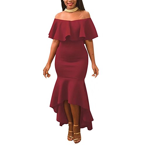 -. Title : Womens Sexy Off Shoulder Irregular Lotus Leaf Cocktail Bodycon Fishtail Dress