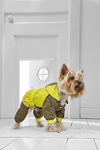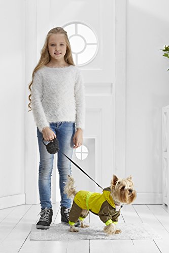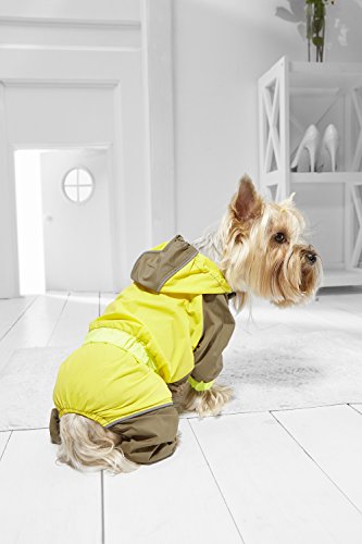 This lightweight raincoat is made from breathable rainwear fabric. It is not insulated so you can use this jacket in warm climate. Elastic bands on the sleeves and waistline ensures comfy fit along with maximum protection from wet, mud and wind. The jacket covers your pet's back, belly and legs. It also features a hood with elastic drawstring for adjusting. The leash hole allows to wear this jacket over the harness. Snaps along the belly guarantees secure closure, but at the same time enables you to put the coat on your dog and take it off without a struggle.