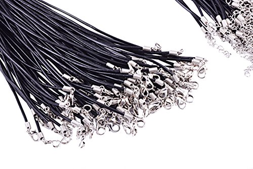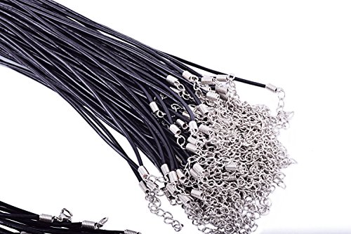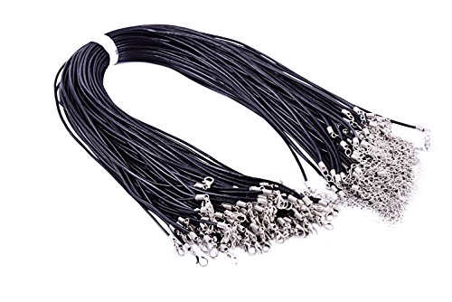 KONMAY 50pcs 22'' Black Real Leather Necklace Cord 2.0mm with 2'' Extension Chain Lead&nickel Free