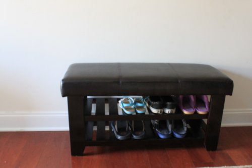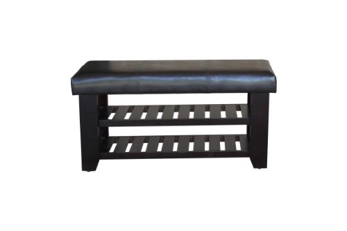-. Feature : Dark Brown Faux Leather With Espresso Solid Wood Shoe Rack Organizer & Bench. / Dimensions 37.5 L x 13.75 W x 19 H / Easy & Simple to assemble