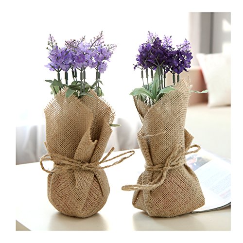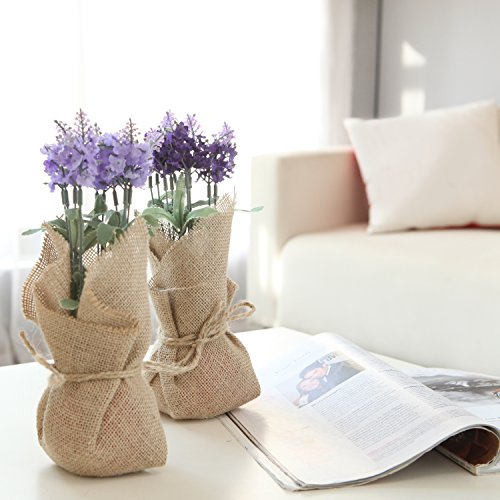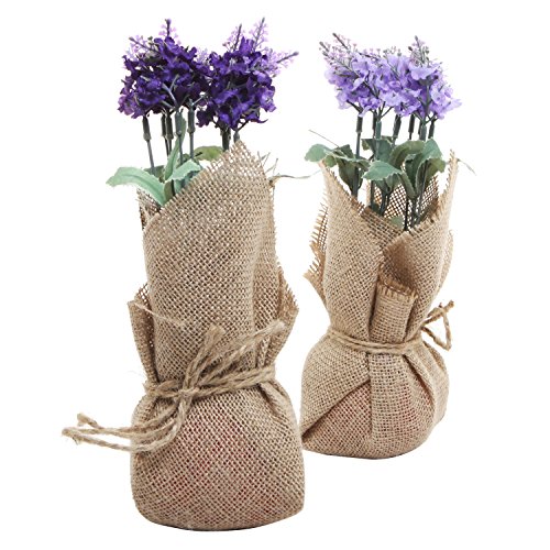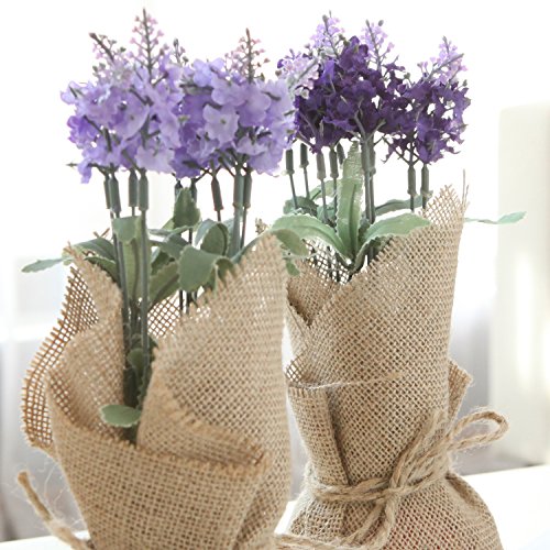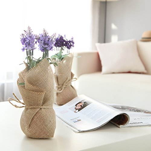 MyGift Artificial Lavender Plants, Rustic Burlap & Twine Wrapped Faux Flowers