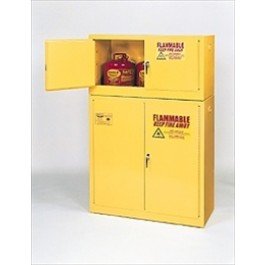-. Feature : This 15 Gallon Flammable Safety Cabinet Comes With Two Self-Closing Doors And One Shelf / Double walled with 1A1/2" airspace; 18-gauge welded steel construction / Flammable storage cabinet includes three point key lock with self-latching button latch doors; user-friendly lever-style easy-turn handles / 8 gauge adjustable galvanized steel shelf holds 350 lbs / Full height continuous piano hinges keeps door aligned