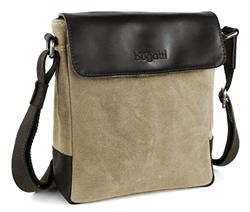 Studio : bugatti Publisher : bugatti Binding : Personal Computers Product Description High quality canvas messenger bag with leather trims and magnetic snaps main zippered compartment with large opening protected computer compartment, up to 13"complete inside organizer panel and zippered pocket front panel pocket dual magnetic flap over back zippered pocket adjustable shoulder strap. 0