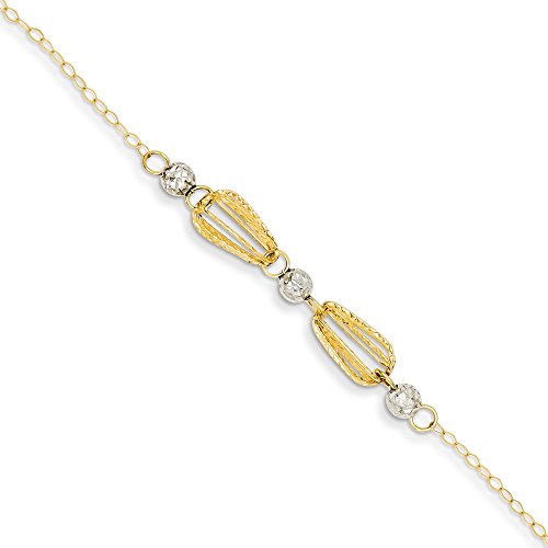 -. Title : IceCarats 14k Two Tone Yellow Gold Teardrop Cages Bead 1 Inch Adjustable Chain Plus Size Extender Anklet For Women Ankle Beach Bracelet