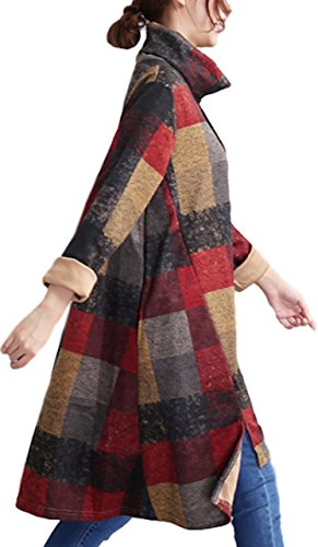 -. Title : Galette des Rois(ガレット デ ロワ)d01 レディース ワンピース 長袖 チュニック チェック スタンド カラー ひざ丈 aライン カジュアル プルオーバー ロング d01