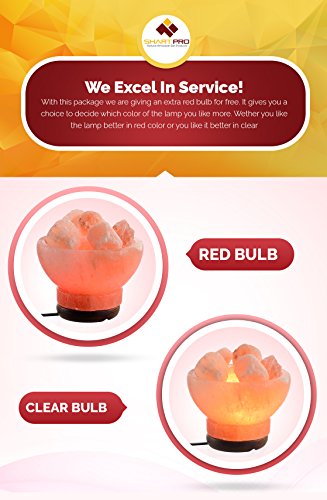 ShartPro Fire Bowl Natural Himalayan Salt Lamp - Handcrafted From Himalayan Rock Salt crystals - Full With Salt Chunks - Wood Base - With 6" UL Cord And Dimmable Switch + 2 Color bulbs, Clear and Red