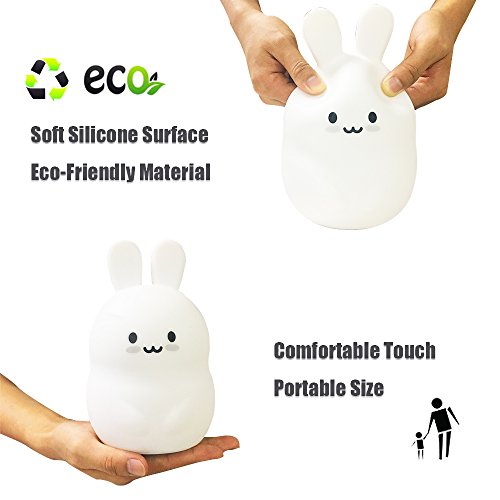 ✔Appearance - The cute cartoon night light with a bunny face is made of washable silicone and has a pleasant soft touch. Suitable to be used as baby bedroom night light and kids desk light.