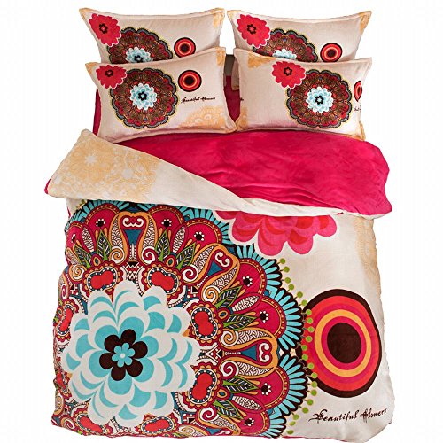 - Feature: Bohemian Mandala Paisley Print Flannel Bedding Set, Super Shuffle and Warm