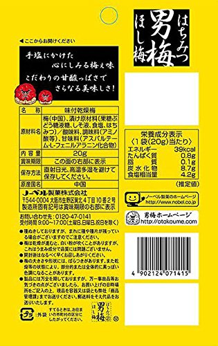 原材料:梅(中国)、漬け原材料〔果糖ぶどう糖液糖、しそ液、食塩、はちみつ〕/酸味料、調味料(アミノ酸等)、甘味料(アスパルテーム・L-フェニルアラニン化合物)