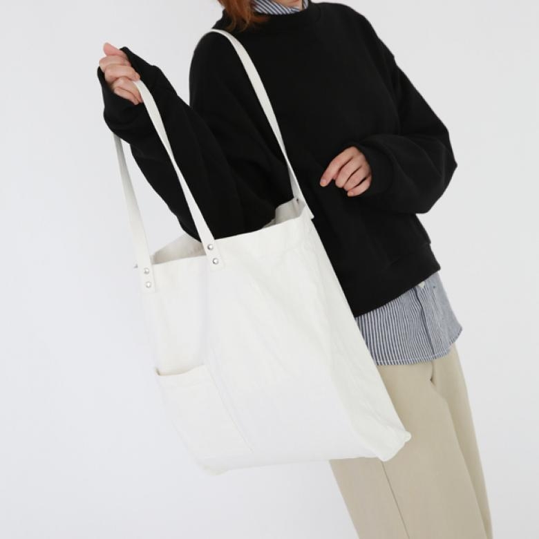 토트백이나 숄더백으로 활용하실 수 있으며 부드러운 코튼소재로 늘어짐없이 들고다니실 수 있습니다. 포켓디테일을 넣어 실용적이며 베이직한 디자인으로 다양한 룩에 두루두루 매치하기 좋습니다.