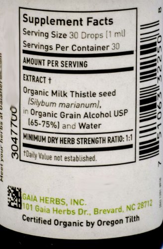 Studio : Gaia Herbs Publisher : Gaia Herbs Binding : Health and Beauty Product Description Gaia Herbs Certified Organic Milk Thistle Seed (Silybum marianum) Liquid Herbal Extract. Milk Thislte Seed a natural source of plant antioxidants. Its an ultimate support for healthy liver function. Also, Milk Thistle Seed supporte the elimination of waste products and the detoxification process. Milk thistle is commonly found growing wild in a variety of settings, including roadsides. The dried fruit (also called achenes) are used to produce modern herbal extracts. 0