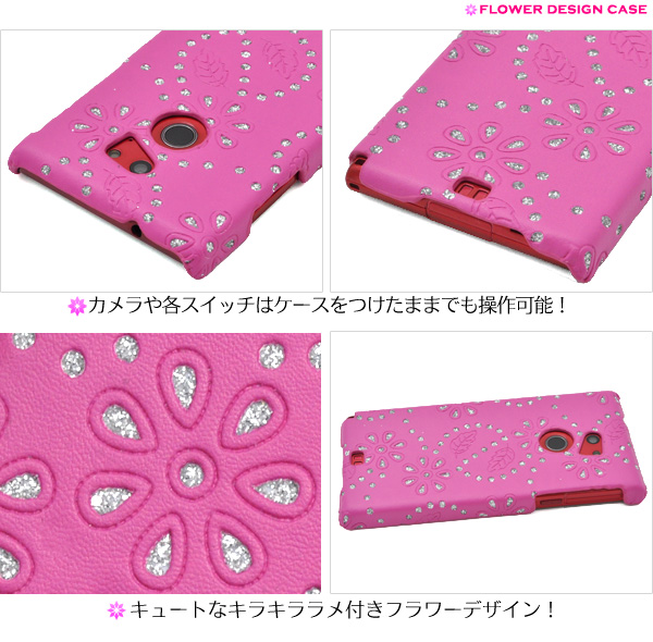フラワーにラメを付けた可愛いデザインケースです。