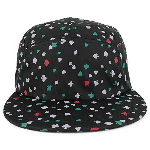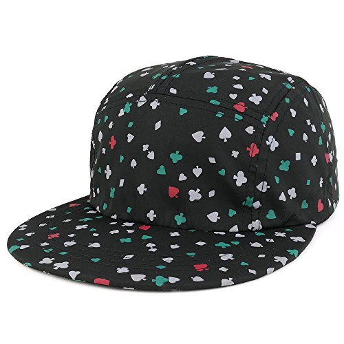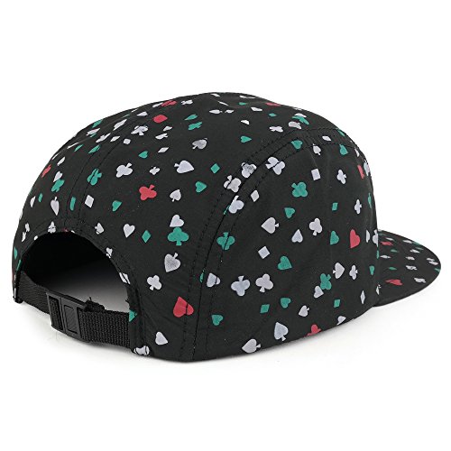 Binding : Apparel Product Description 5-Panel Lightweight Unstructured Playing Card Print Flatbill Snapback Cap is the hat you have been looking for. This cap is very lightweight and comfortable to wear. Easy to match with any outfit you put on. Made with 50% Cotton, 50% Polyester materials. One size fits most. Adjustable clip buckle closure strap. This hat would make a great gift. 0