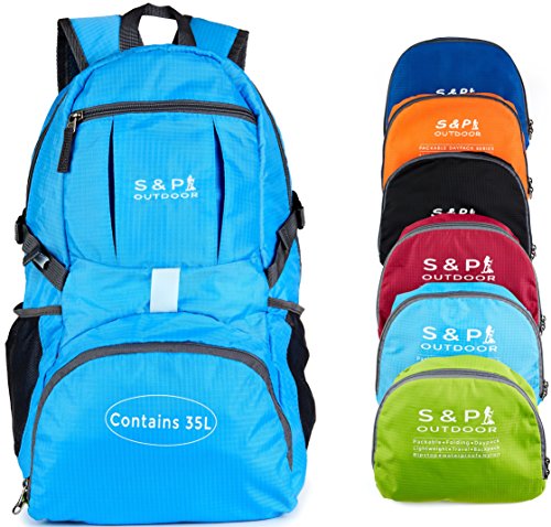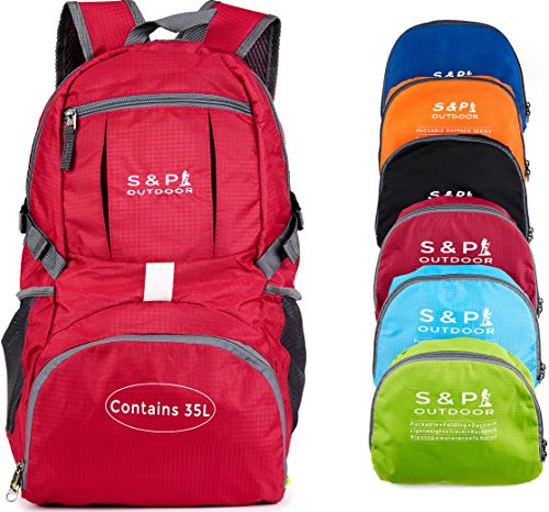 S & P Outdoor 35L Sport waterproof Lightweight Packable backpack Durable folding Travel Hiking Trekking Camping Cycling Foldable Ultralight and Handy Daypack Backpack (Maroon)