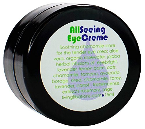 -. Binding : Misc. -. Brand : Living Libations -. Feature : Dry Skin, Fine Lines & Wrinkles Will Enjoy An Influx Of Moisture With All Seeing Eye Crème, Which Is Perfect To Wear Under Makeup / Made By Whipping Herb-infused Jojoba & Tamanu Oils With Refreshing Rosewater + Aloe Vera / Infused With An Entire Palette Of Nourishing Essences To Soothe The Delicate Skin Around The Eyes / Organic / Wildcrafted Ingredients - Paraben free, Sulfate free / 15 ml / .5 oz -. Label : Living Libations -. Manufacturer : Living Libations -. PackageQuantity : 1 -. ProductGroup : Beauty -. ProductTypeName : BEAUTY -. Publisher : Living Libations -. Studio : Living Libations -. Title : Living Libations - Organic / Wildcrafted All Seeing Eye Creme