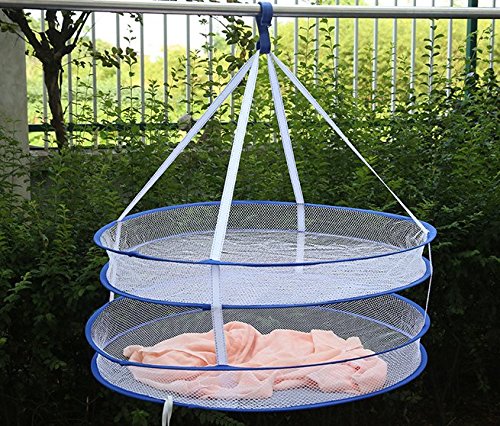 FEIJUN FJ-1000016 9.8'Steel Rings Foldable Heavy Duty Hanging Dryer Rack,2 Layer Mesh Hydroponic Drying Rack Net