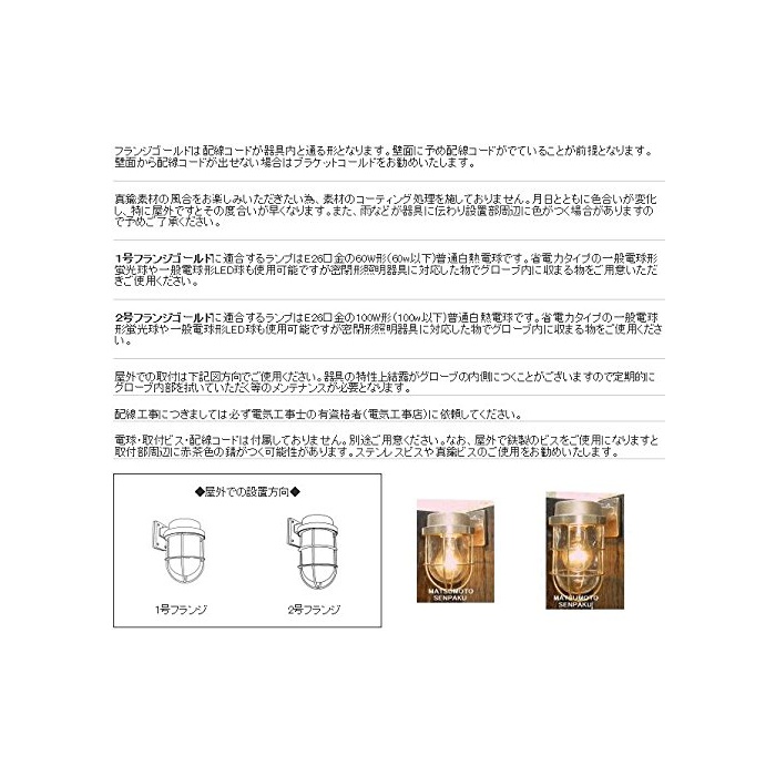 마츠모토 선박 전기 마린 램프 wall 라이트 시리즈 1 호flange 골드 1-FR-G 【옥내 옥외 겸용】【램프 별매】