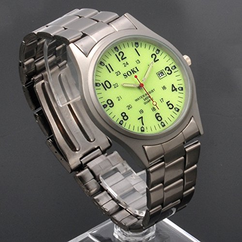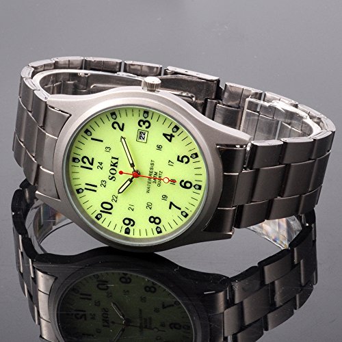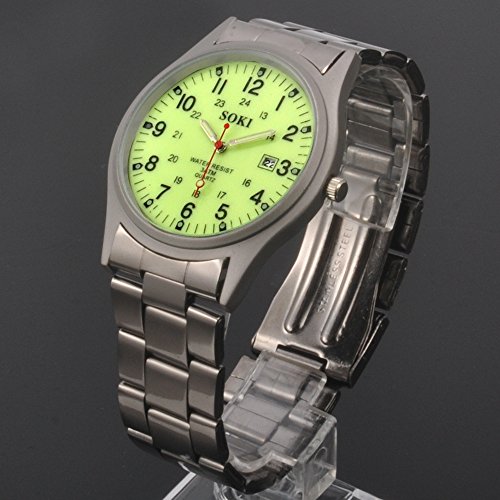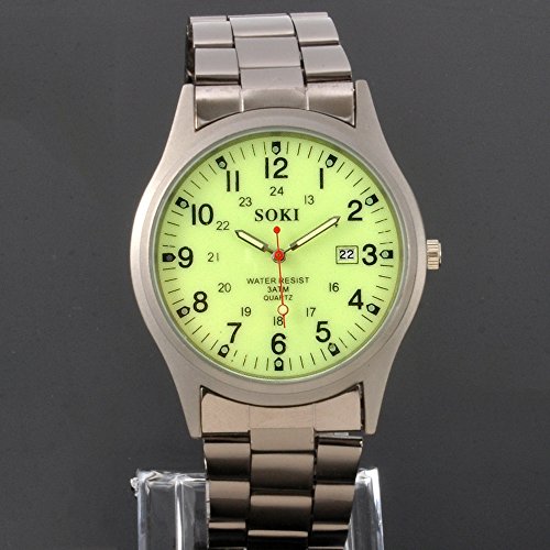 -. Title : Mens Noctilucent Luminous Dial Quartz Analog Stainless Steel Wrist Watch