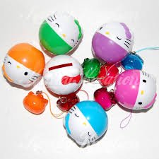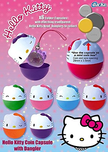 There are 6 different figurines in the collection set, they come in different colors; you will receive Green, purple, red, blue, yellow and pink. The outside Hello Kitty character has a perfect and unique design useable for gifts, goody bags, party favors or any other type of decoration, even cake toppers, The capsule then also becomes a piggy bank!! A mini money box. These particular Hello Kitty characters are full of surprises.