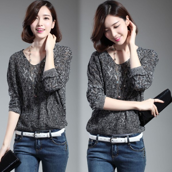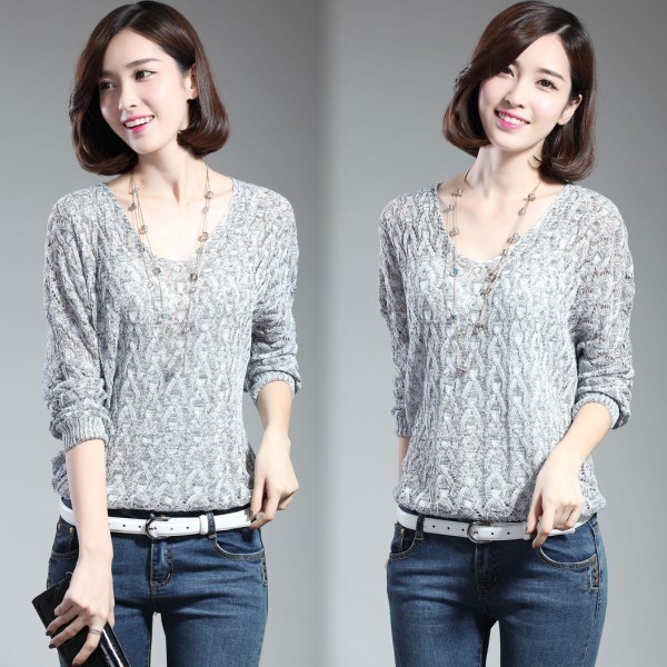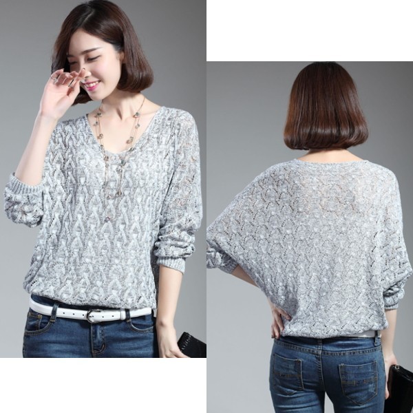 | 商品名 | シースルー 透かし編み Vネック ドルマン ニットセーター |