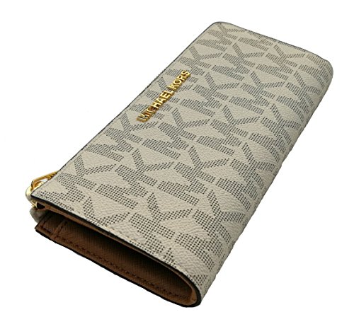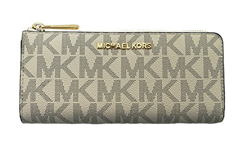 -. Title : Bedford Large Three Quarter Zip Around Pebbled Leather Wallet Vanilla/Acorn