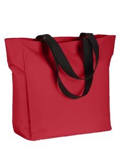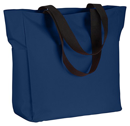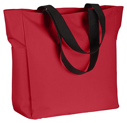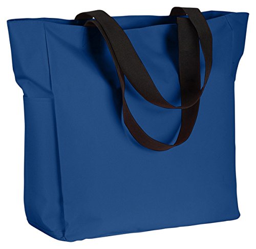 Product Description600-denier polyester; Contrast self-fabric handles 1.5" wide; Open pockets both ends; Recessed zippered main compartment; Inside hanging zipper pocket; 8"W x 7"H;0
