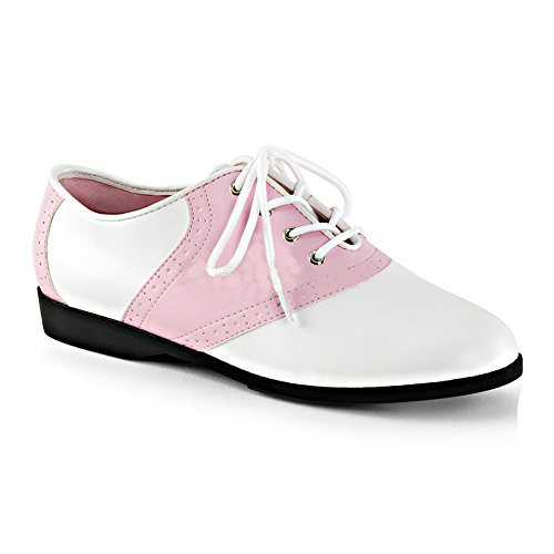 Binding : Apparel Product Description This traditional saddle oxford is perfect for school uniforms or for those who want to convey "school girl" style. It features a durable upper with classic saddle oxford perforation details and laces for a great fit, padded insole for comfort, and a lightweight, flexible outsole. Manmade materials. All our shoes are medium width. This shoe is made of a quality white imitation patent leather with black imitation stitched leather overlay with saddle design and sturdy white shoe ties. Inside is lined in soft imitation kid type leather and has soft padded foot rest. This is a great reproduction of an old classic. Perfect finishing touch for that poodle outfit or any 50's ensemble. At this price do the whole class or party. 0