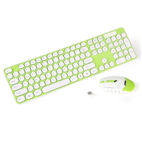 -. Feature : It adopts advanced 2.4GHz photoelectric signal transmission, which makes the signal stable and strong anti-interference. Transmission distance can be up to 10m without obstacles. / Silent click: The unique silent technology and high-ranking mute shrapnels in all mouse buttons and keyboard keys allow you and people around enjoy a quiet environment. (Note: The keys SPACE and SHIFT will have a little noise due to their bigger sizes) / Adjustable DPI: The mouse has two levels DPI (1000/1600DPI), which makes it easy to deal with all kinds of environment. Optical laser allows for quick response and smoother tracking. / Plug in and play: It shares one tiny Nano USB Dongle receiver, which can save your computer USB port. Plug in and it will work. Easy to use. / Candy Style and Fashionable Design: The fresh colors (light blue, pink, light green and black) match with special dot keys, making you have a feeling of eye-popper.