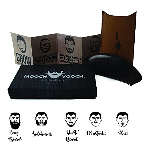 ★ VINTAGE LEATHER CASE & AMAZING GIFT – only with Mooch Vooch Comb you will get REAL leather (World famous Indian Goat Leather) case pouch - not PU or Synthetic like from others. No wrapping needed. Packaged in Mooch Vooch cardboard gift box. Great Gift for the bearded! Also have 4 complementary stickers.