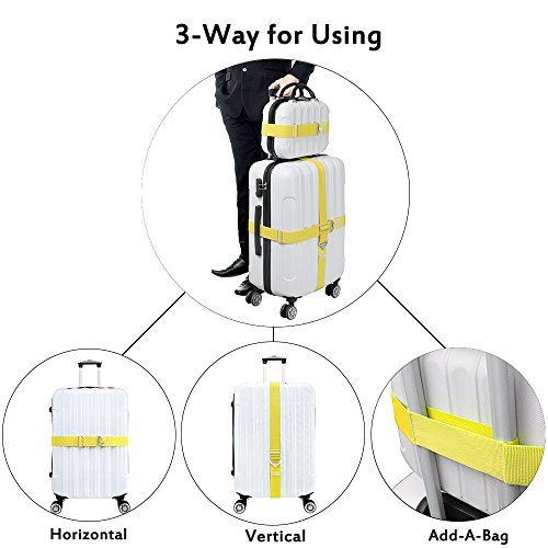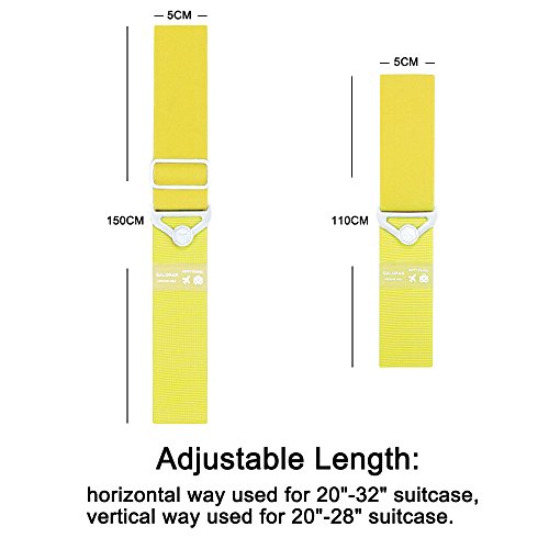 【Adjustable Elastic Length & Widely Application】Strap length: 43"-78" / 110-200CM. Strap width: 2" / 5CM. Adjustable Length: horizontal way used for 20"-32" suitcase, vertical way used for 20"-28" suitcase. Fit for most material and brand suitcase, such as Samsonite, Travelpro, Delsey, Kenneth Cole, Aerolite,Travelers Choice.