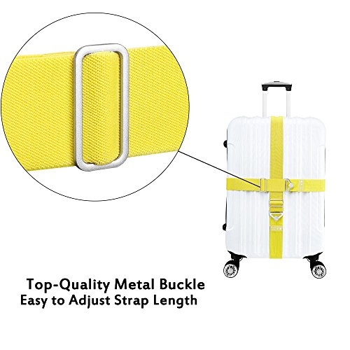【Newest Version】Unique designed with Half Nylon PP Strap + Half Elastic Strap, not only adjustable, but also fixed your suitcase tighter. Also designed an extra elastic strap for you to tie bags on the top of your large suitcase.