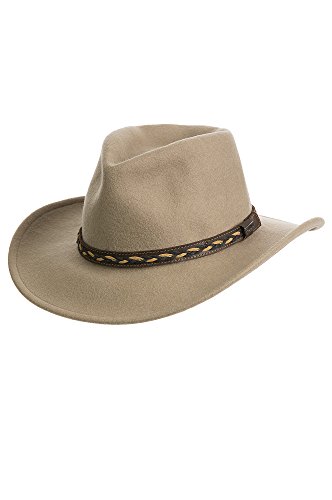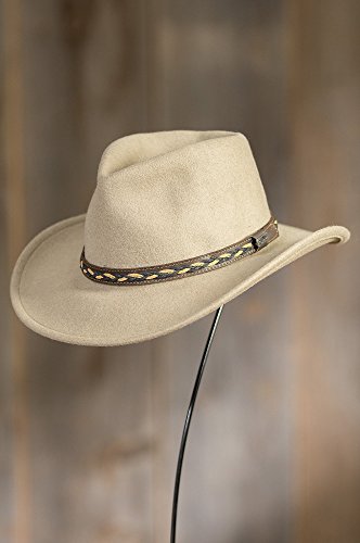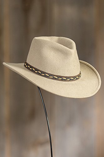 Studio : Overland Sheepskin Co. Publisher : Overland Sheepskin Co. Binding : Apparel Product Description Looking good starts at the top, which is why you want to be wearing the Jasper Outback. Meticulously styled in crushable waterproof wool, this dashing headwear adds muscle to your daytime presentation. The pinched crown is proudly poised above a 3" brim that's finished with a two-tone leather braid band, for a good-looking, understated hat that goes everywhere, including your suitcase. A comfy cotton sweatband makes the Jasper sit just right. 3" brim. Made in the USA. 0