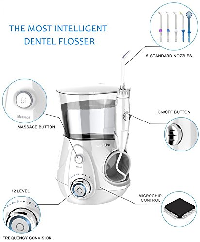 5 x detachable 360° rotating nozzle included (1 nozzles with silicone). Better use for dental implants and tooth-sensitive persons.