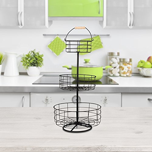 It's Useful 3 Tier Counter-top WIRE BASKET is Crafted from Durable Iron! Offers an open-air storage to display fresh fruits and vegetables. Features and Benefits: - Multi-function use as a display or produce storage