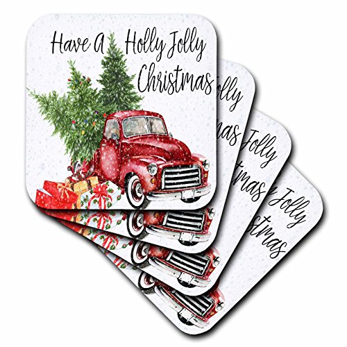 -. Brand : 3dRose -. Color : Red -. Feature : Dimensions (in inches): 3.5 H x 3.5 W x 1/4 D / Comes in a set of 4 - same image on all coasters / Washable - to prevent image from fading clean with mild detergent using cool water / Absorbs moisture / Made of recycled rubber -. Label : 3dRose -. Manufacturer : 3dRose -. ProductGroup : Kitchen -. ProductTypeName : KITCHEN -. Publisher : 3dRose -. Studio : 3dRose -. Title : 3dRose Anne Marie Baugh - Christmas - Have A Holly Jolly Christmas Red Truck With Christmas Trees - Coasters