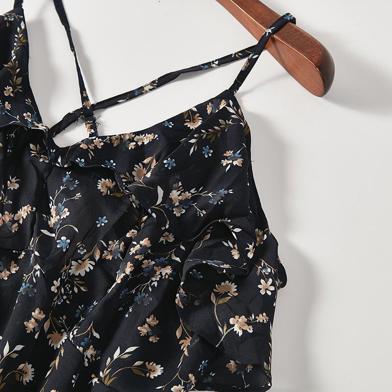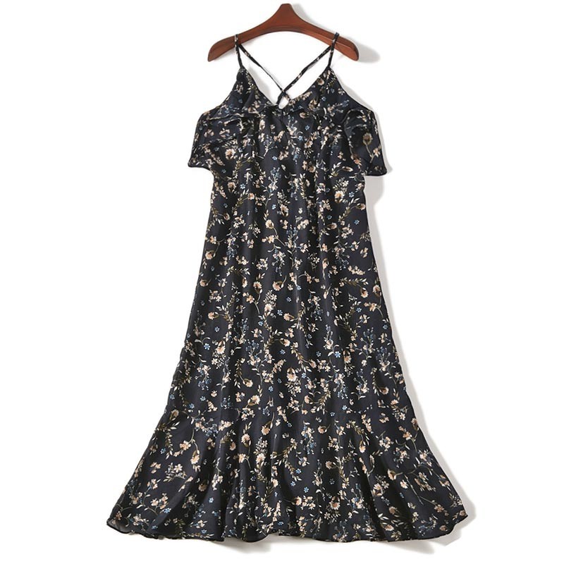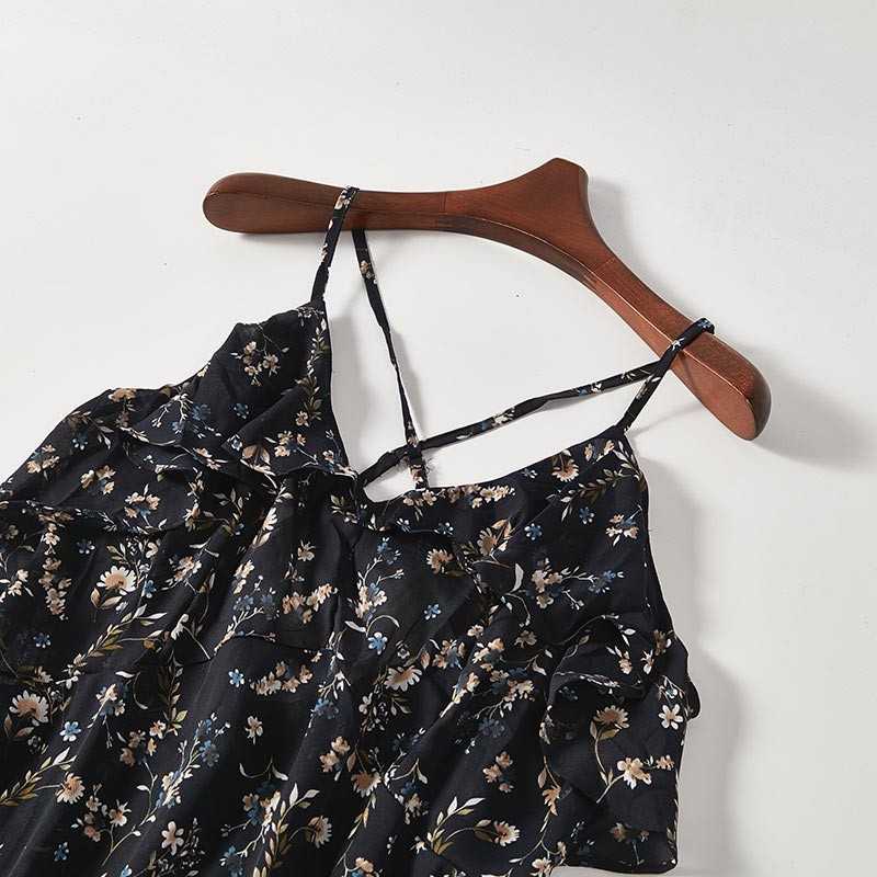 レトロな花柄プリントのオフショル付きキャミソールワンピース♪